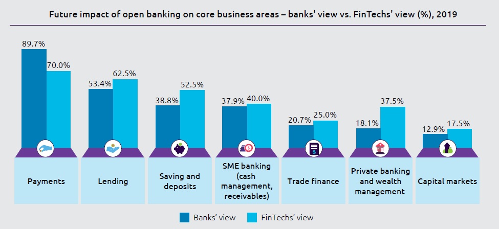 FinTechs were more optimistic about Open Banking, but 50% expressed fears over security and privacy, and 38% over the loss of control of customer data.