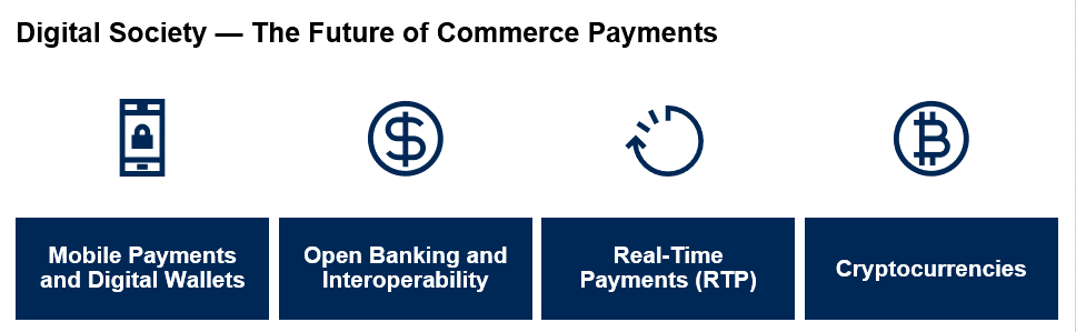 The future of commerce payments in a digital society will be largely shaped by four key developing trends observable in the market today. (See below) This Gartner based research note aims to help understand the current trajectory and future impact of these trends and to prepare for the future of digital payments within your organisation.
