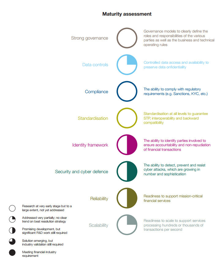 Based on the assessment, the eight critical factors that need to be addressed for industry wide adoption of DLTs include: