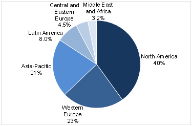 Distribution of Card Payments Worldwide, by Region, 2013 – Source: Global Payment Cards Data and Forecasts 2013-2019 (RBR)