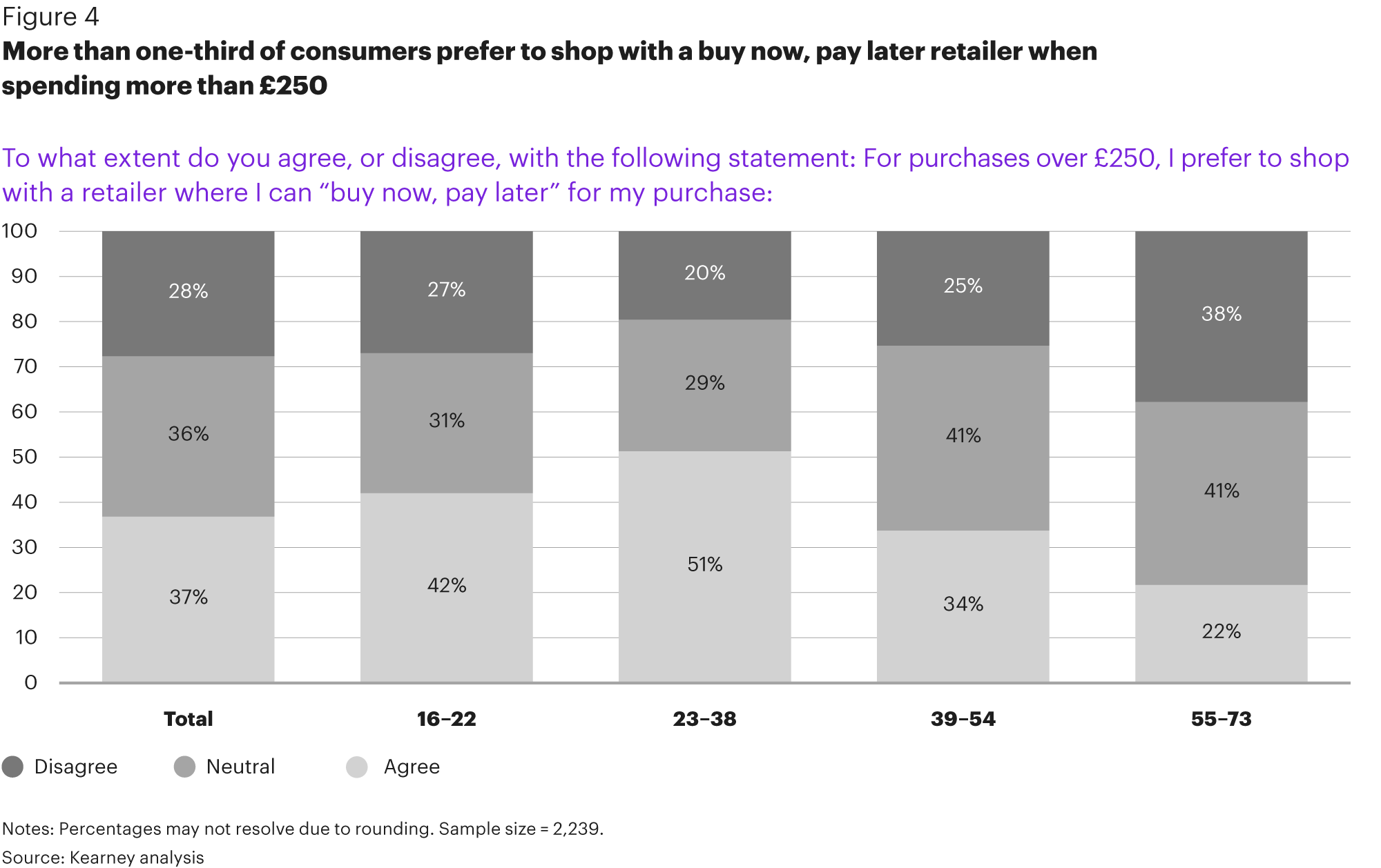 The report also highlights that consumers are increasingly using it as a way to choose which retailers to shop with. Nearly 40% of shoppers (37%) said that if making a purchase costing £250 or more, they would prefer to buy from a retailer that offered a ‘buy now, pay later’ option. This is especially true for younger shoppers – over half (51%) of millennials and 42% of Generation Z agreed.