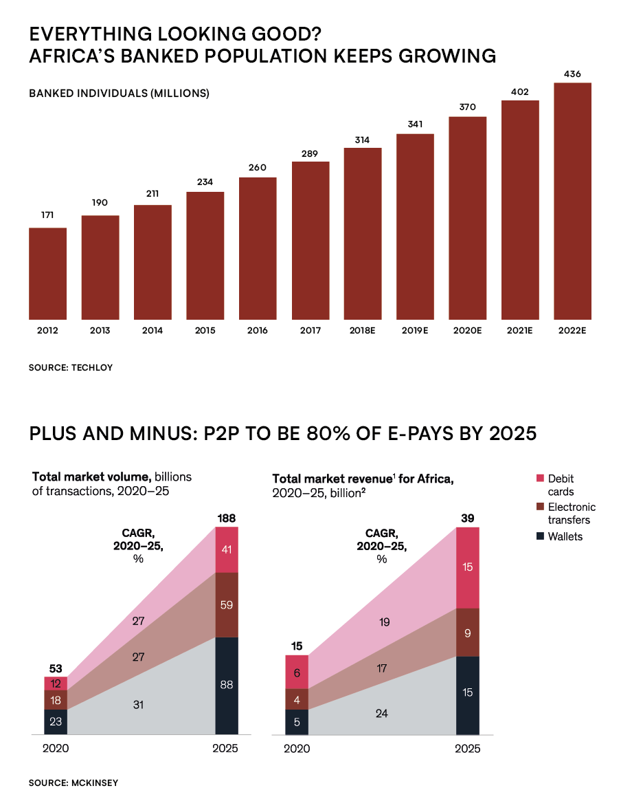 The real number, of course, was around 300 million. Likewise, few could have imagined a decade ago the stratospheric rise of peer-to-peer (P2P) payments in Africa via mobile phones through networks such as Kenya’s much-heralded mPESA, Orange Money and MTN MoMo.