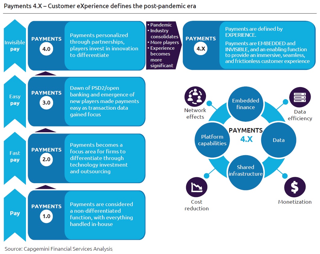 Payments are entering a new experience-driven era (Payments 4.X), ushered in by an accelerated transformation timeline due to COVID-19 and the growing digital appetite of customers, according to the World Payments Report 2021.