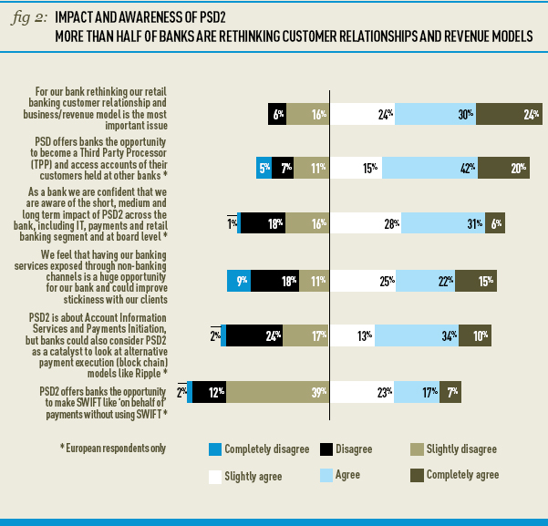 However, only 37% of European banks felt that understanding of the full implications of the new rules was high across all of their IT, payments and retail banking units and at board level.
