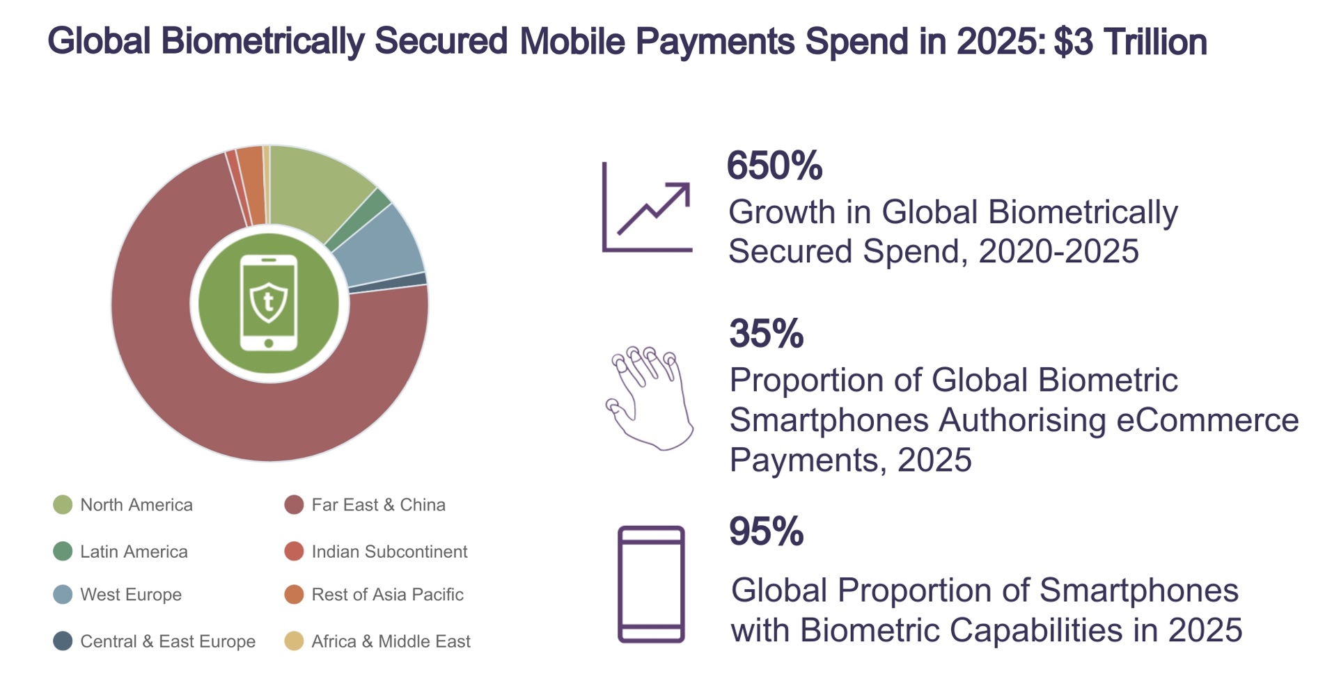 The research found that although biometric capabilities will reach 95% of smartphones globally by 2025, only 35% of these smartphones will be used for making biometric payments in e-commerce in the same year.
