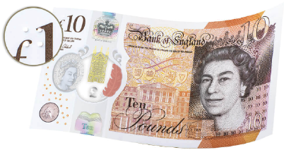 In mid-September, the Bank of England issued a new polymer £10 note featuring the author Jane Austen. The notes include raised dots in the upper corner to help blind and partially sighted people identify them. Security features include a hologram window to raise the bar against counterfeiters.