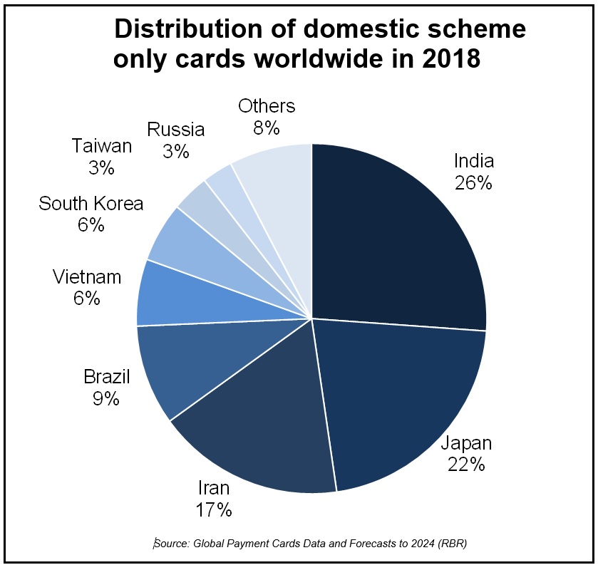 Cards only carrying domestic payment card schemes branding accounted for 12% of all payment cards worldwide in 2018. This sector has strong growth potential, with products tailored to local market requirements.... read more