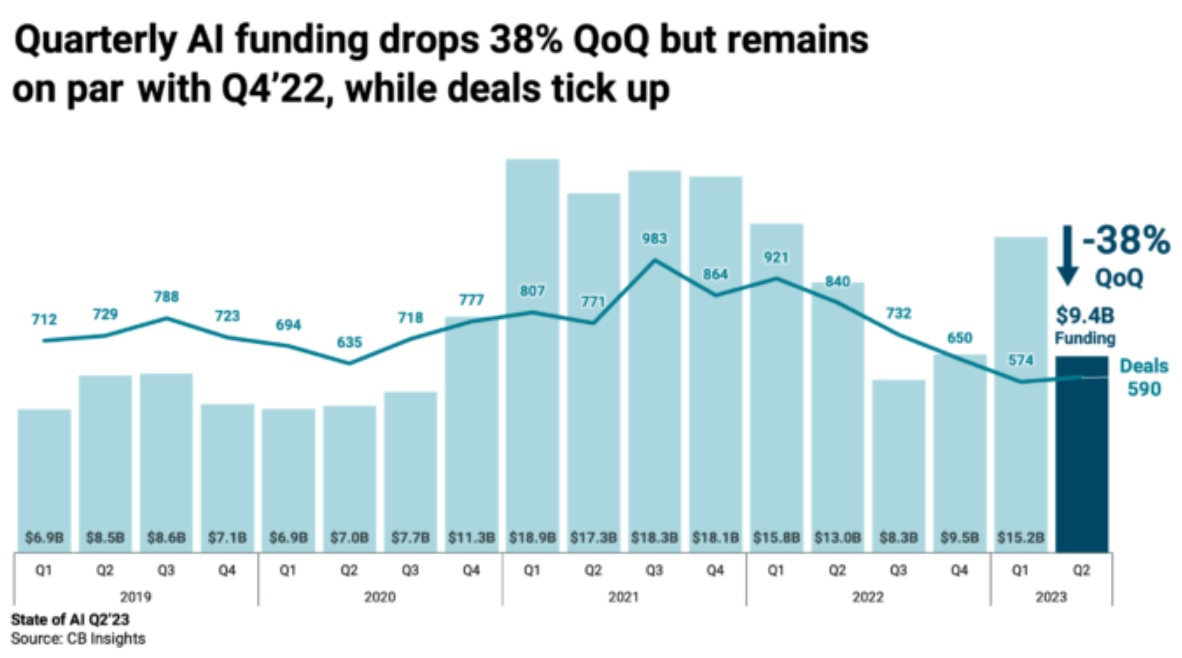 Amid the broader venture gloom, generative AI mega-rounds and unicorn births have kept AI investment levels relatively elevated, with Q2 2023 funding coming in at $9.4 billion. Using CB Insights data,... read more