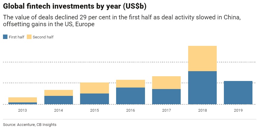 According to a new report, global investments in FinTech has fallen by 29% in H1 2019 as deal activity in China in particular fell sharply amid an escalating trade war... read more