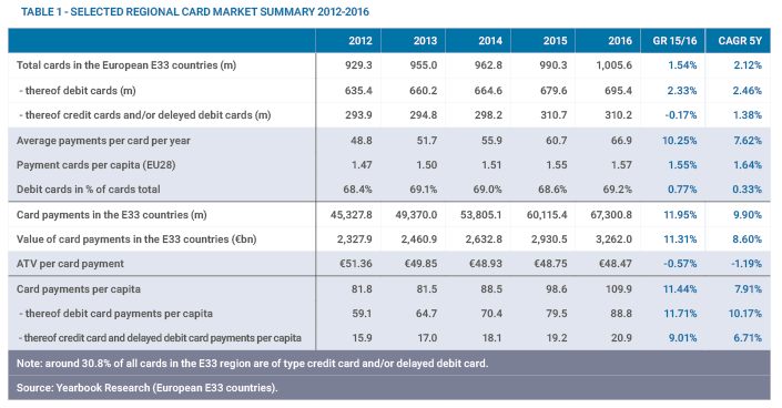 Cards and card payment at the point of sale and online showed solid growth rates in most European countries in 2017. This was supported by the rollout of contactless technologies,... read more