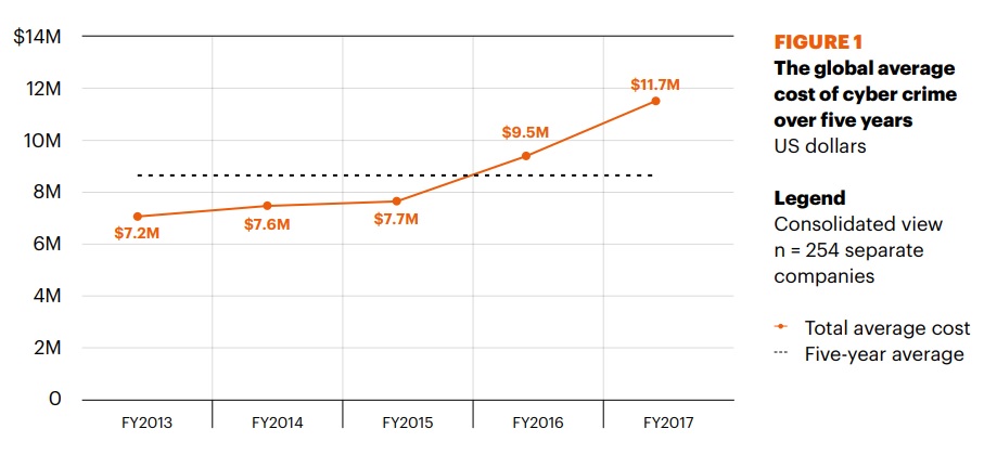 Cybercrime is on the rise, successful breaches per company each year has risen more than 27%, from an average of 102 to 130. Ransomware attacks alone have doubled in frequency, from 13% to 27%, with incidents like WannaCry and Petya affecting thousands of targets and disrupting public services and large corporations across the world.