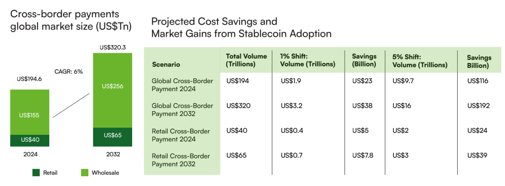 The stablecoin value proposition is compelling: no pre-funded accounts, 24/7 availability, and up to 80% lower transaction fees.