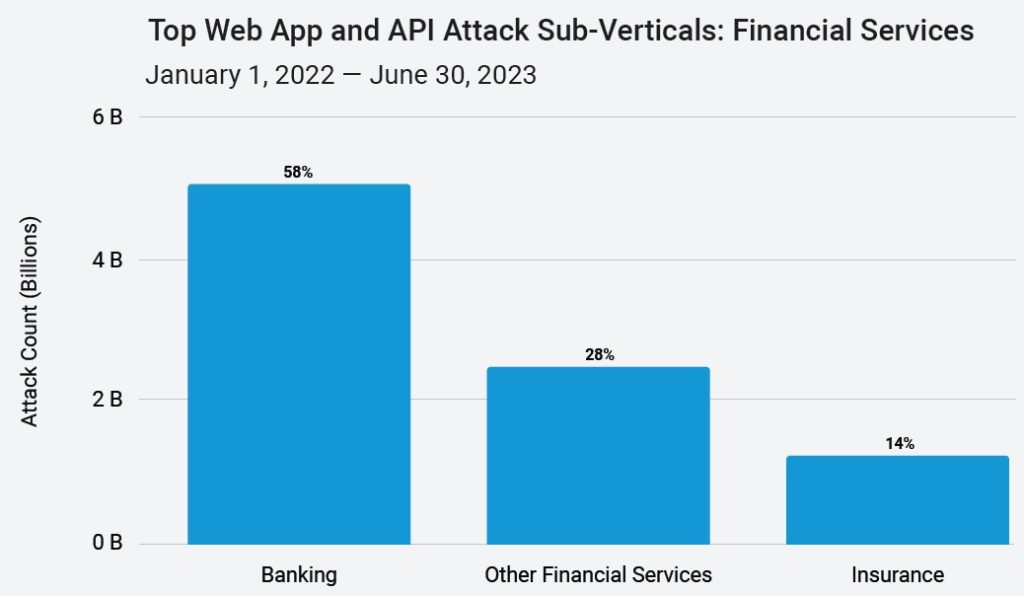 The High Stakes of Innovation: Attack Trends in Financial Services found there were approximately 1 billion web application and API attacks, which represents a significant 119% year-over-year increase when comparing Q2 2022 with Q2 2023.