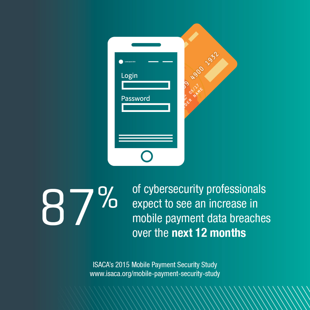 A survey of more than 900 cybersecurity experts shows that an overwhelming majority (87%) expect to see an increase in mobile payment data breaches over the next 12 months, yet 42% of respondents have used this payment method in 2015. The 2015 Mobile Payment Security Study from global cybersecurity association ISACA suggests that people who use mobile payments are unlikely to be deterred by security concerns.