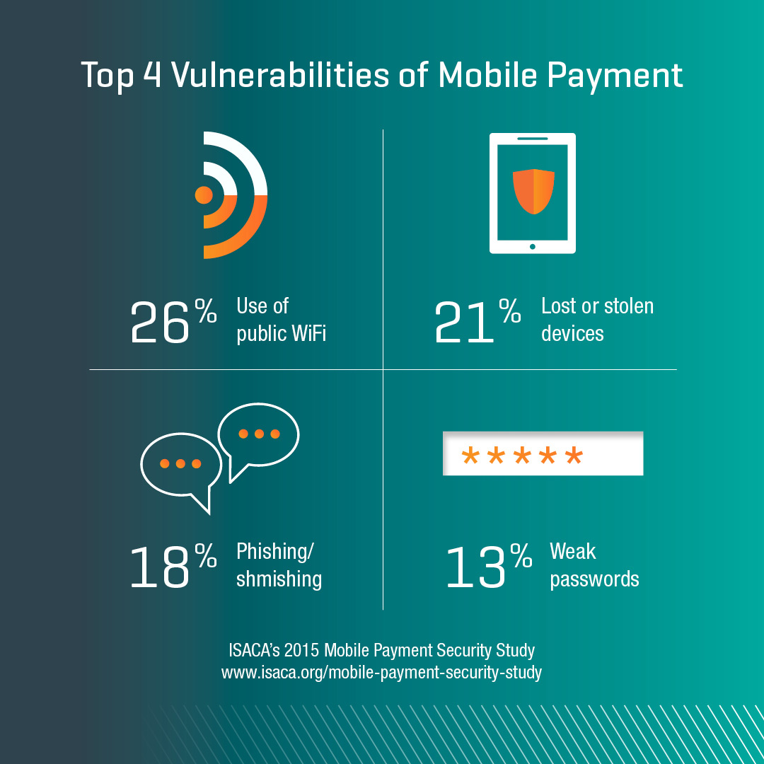 ISACA survey respondents ranked the major vulnerabilities associated with mobile payments:
