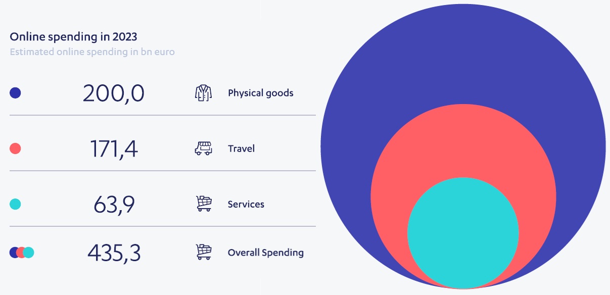 The report highlights a significant growth in overall online spending across Europe in 2023, with a notable resurgence in the travel sector, which had been adversely affected by the pandemic.