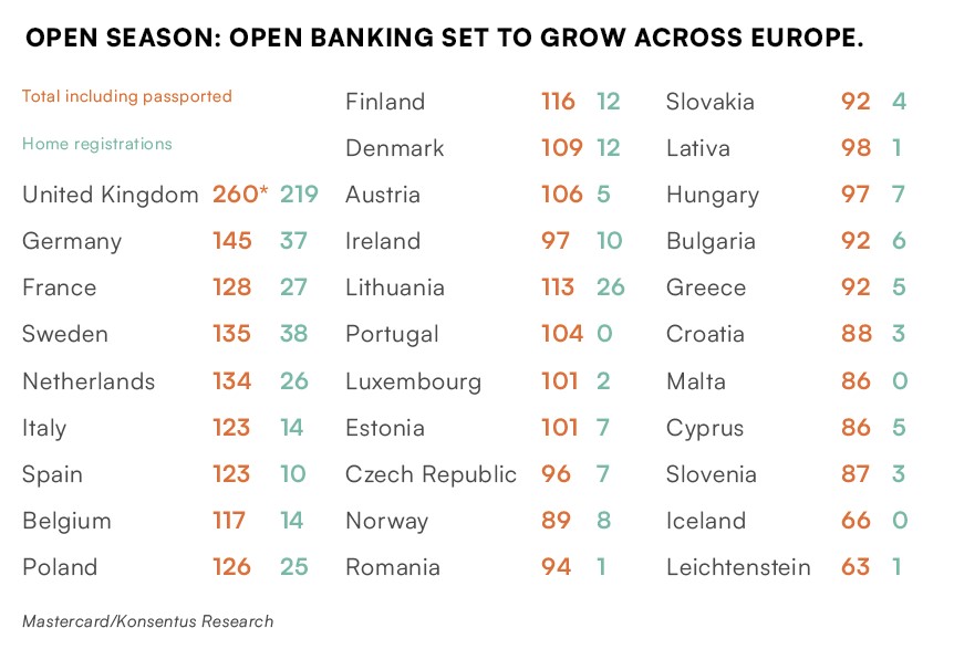 The latest Mastercard/Konsentus study into Open Banking implementations in Europe reveals that hundreds of companies have successfully registered as Third Party Providers, with the UK – which is ploughing its own furrow in Open Banking after leaving the EU on 1 January 2021 – leading the pack.