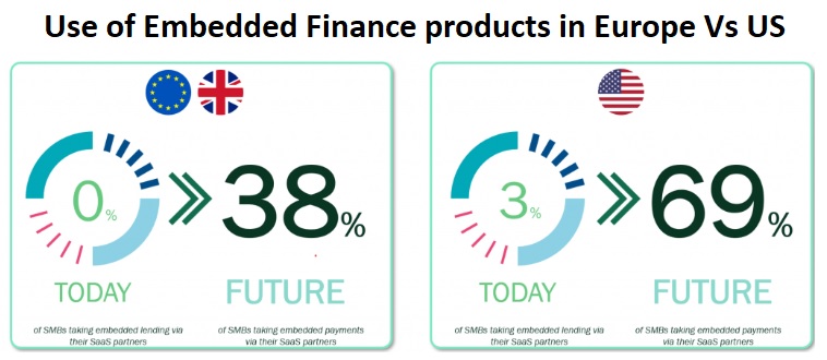 The research took the pulse of 1,000 small and medium sized businesses (SMBs) across the US, UK, France, Germany, Italy and Spain, and uncovered a significant gap in the use of embedded finance in the US compared to Europe.