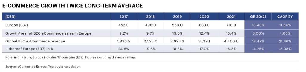 Across Europe, e-commerce shows no sign of slowing its relentless rise as an overall proportion of economic activity.