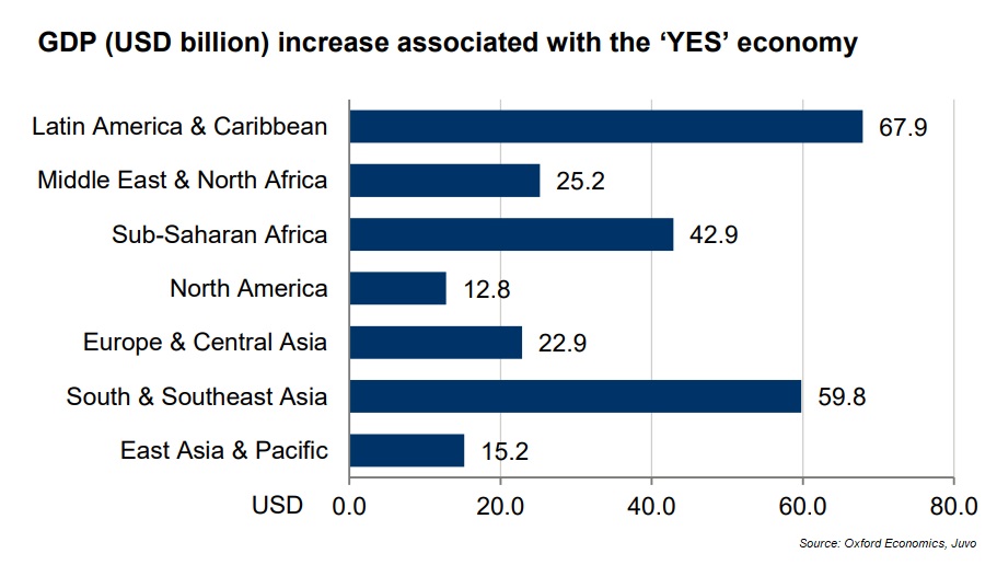For the forecast, Oxford Economics devised a FiDaaS enabled scenario to reflect a world in which mobile telecom operators have created a unique financial identity and credit score for their unbanked customers, allowing the provision of financial services to those that lack a credit history. This is an outcome that the report calls the “YES economy”. The name comes from financial service providers being able to say “yes” and extend their services for the first time to the globally unbanked, thanks to their new financial identity.