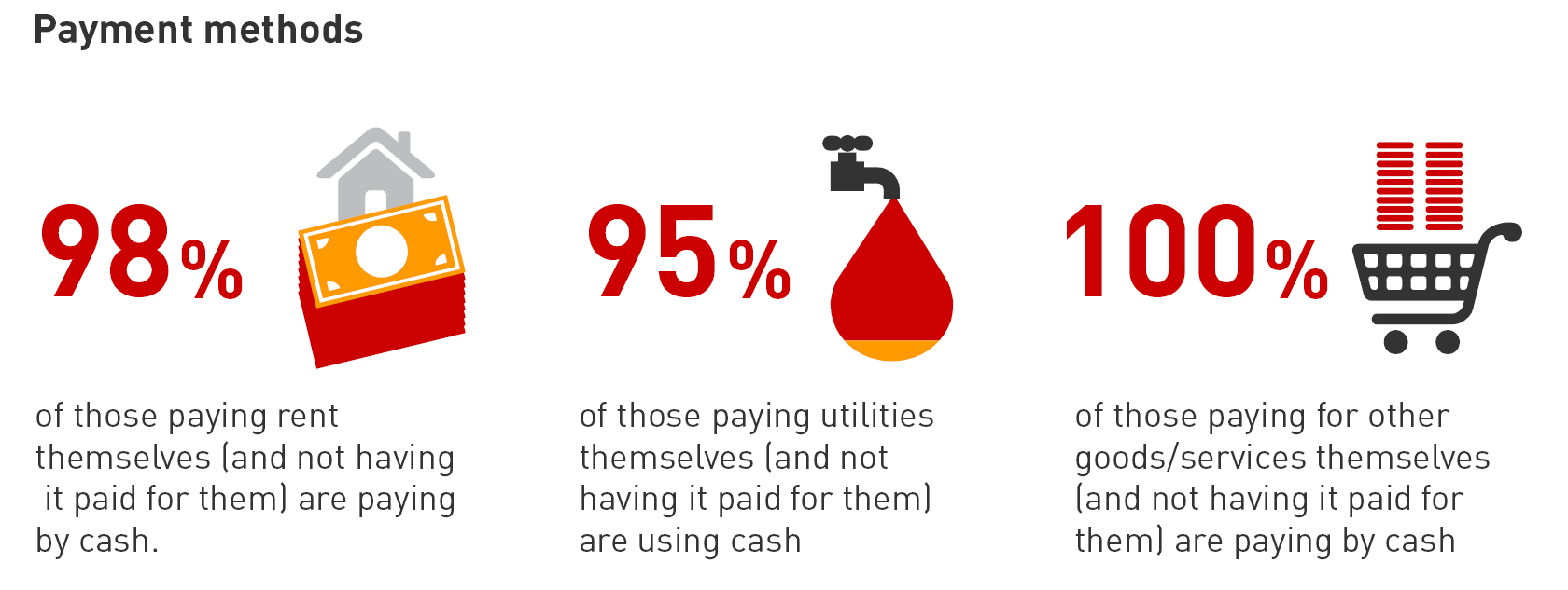 Instead of benefitting from bank account features like direct debits, internet banking or indeed the subsequent ability to buy discounted goods online, the bulk of these groups use cash to pay for rent (98%) and utilities (95%), and store their money in pots, boxes and secret hideaways at home.