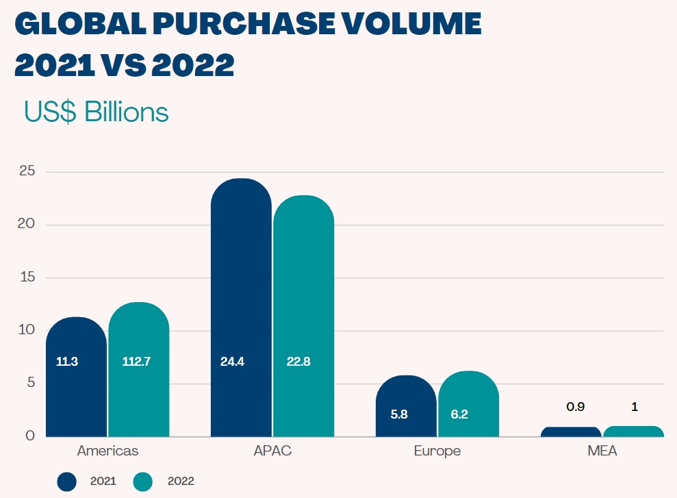 With the easing of lockdown restrictions in Europe, the region saw purchase volume increase by 7% as consumers and businesses started travelling again.