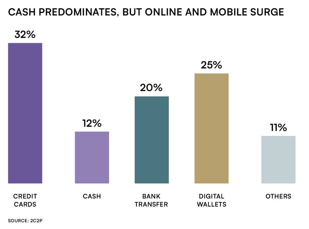 According to Mordor Intelligence, e-wallet usage will grow around 14 percent per year over the next decade, while just one provider, TrueMoney, reports consumer usage grew by 200 percent in the last year alone.