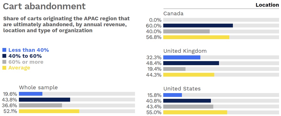 A new survey of 500 business leaders from across North America and the UK shows that these firms are losing 52% of their potential APAC sales to cart abandonment, on average — and many are forgoing even more.