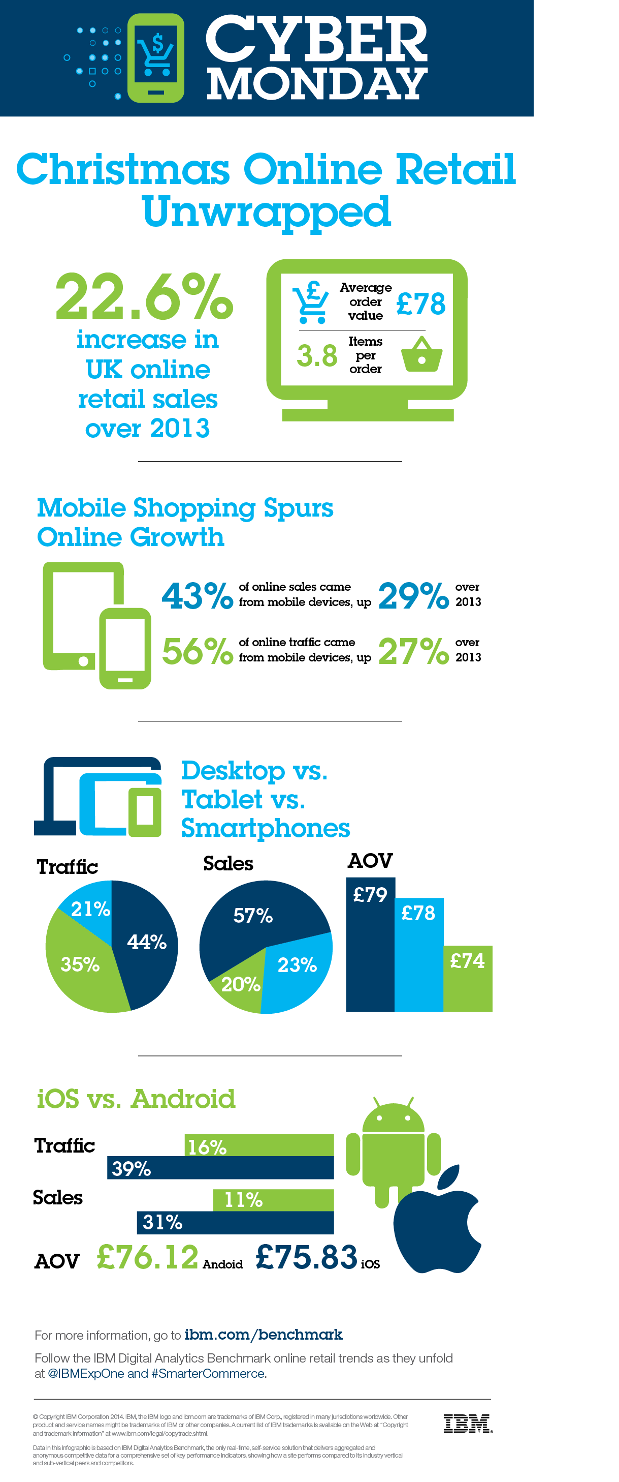“In last year’s benchmark we saw the strong growth of the mobile channel, but this year’s Cyber Monday results confirm that mobile has now become the dominant channel. The emphasis will continue for retailer’s to optimise the customer mobile customer experience even further going into 2015, to ensure they are capturing the very rich customer interaction data that mobile devices provide,” Lovell concludes.