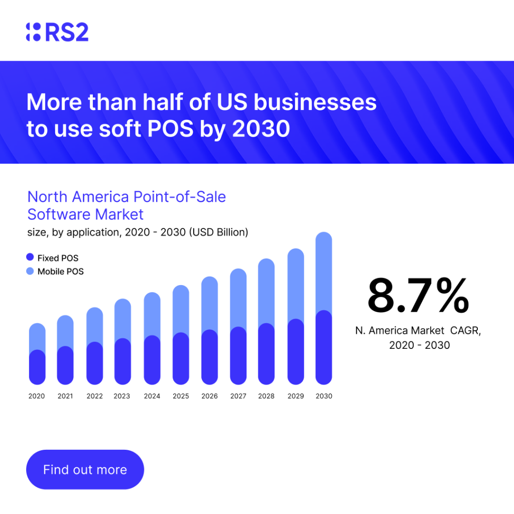 A study from Grand View Research suggests that more than half of US businesses will be using soft POS systems by 2030 as both SMEs and large corporates take advantage of the convenience, flexibility and lower cost of soft POS systems.