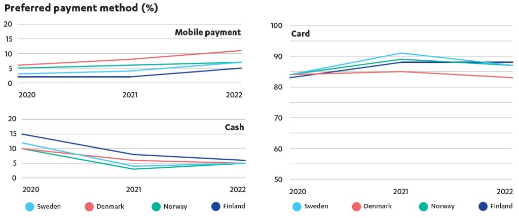 Mobile payments are however continuing to gain ground and have now reached a milestone: the consumers prefer these more than cash in all Nordic countries.