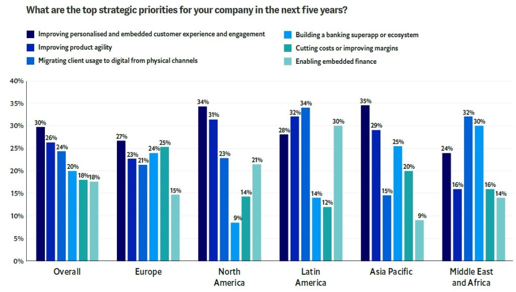 Banks are responding by focusing on enhancing customer experience, increasing engagement, and improving product agility.