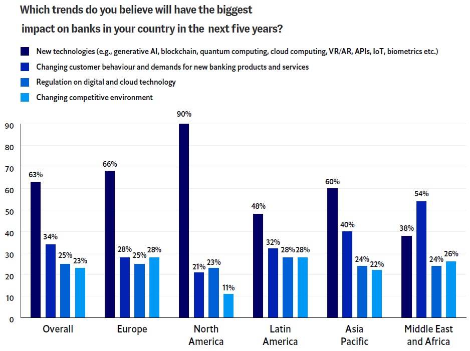 With 90% of banks in the region identifying technology as the most significant trend impacting their industry over the next five years, financial institutions are increasingly investing in tools like artificial intelligence (AI), blockchain, and cloud computing to modernise their infrastructure and meet growing competitive demands.