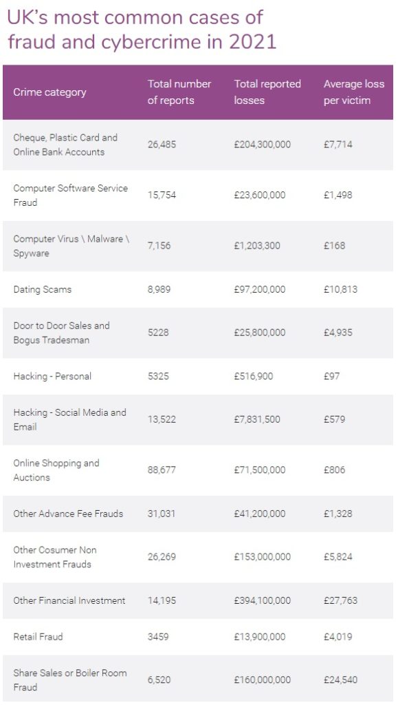 According to the latest Fraud report from Money.co.uk, in Q4 2021, there were a total of 95,124 reported cases of fraud and cybercrime in the UK, resulting in £635.3 million in losses overall – that works out as nearly £7,000 lost per victim on average.