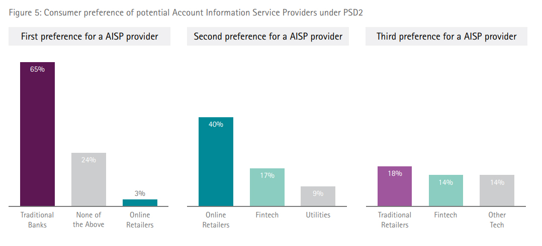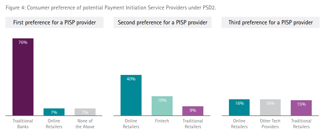 Trust in online platforms and social-media companies as providers of payments services is also low, with the majority of consumers saying they would be unwilling to initiate a payment through online platforms (58%) and social-media companies (82%).