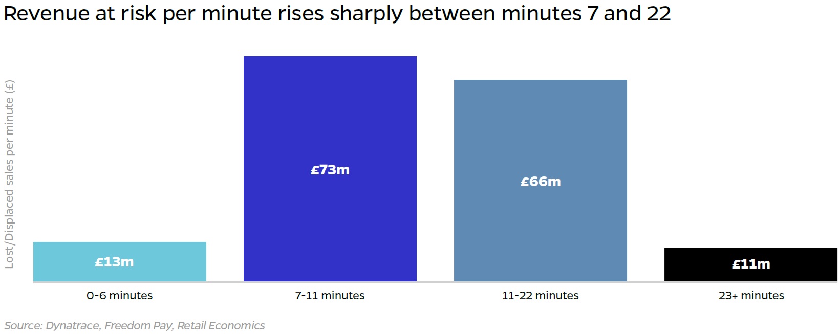 While most consumers will endure no more than six minutes of disruption before walking away, the average payment outage currently lasts 84 minutes – 14 times longer than customer patience.