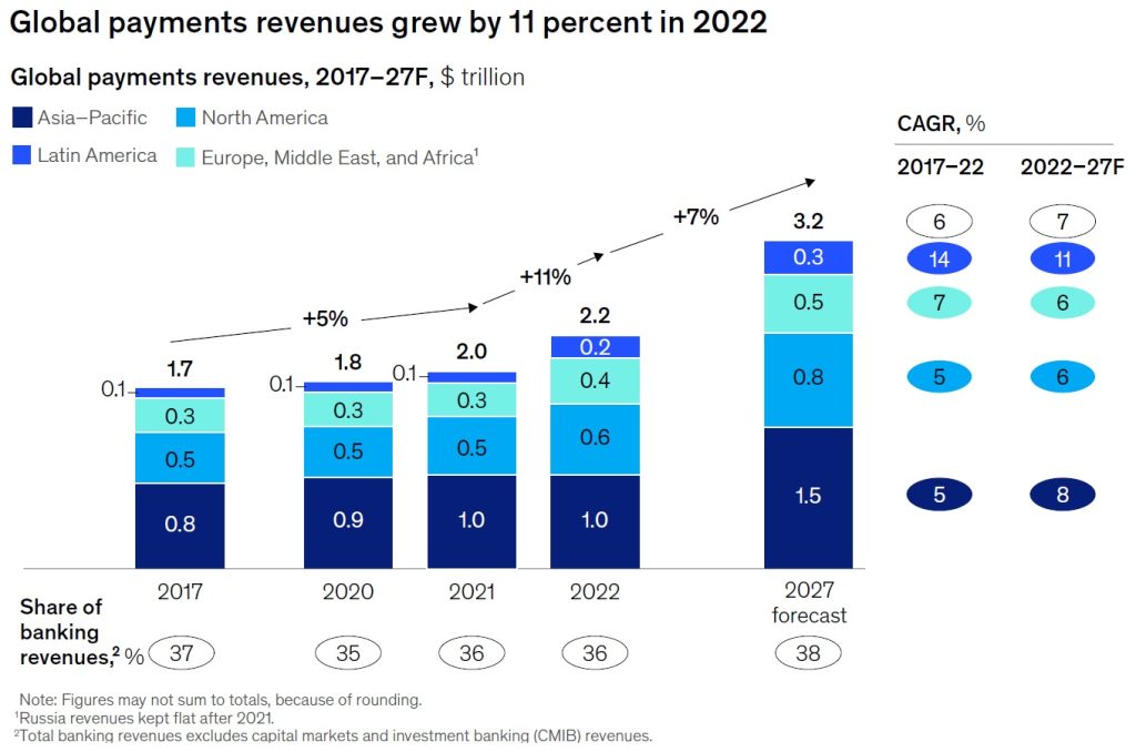 The payments industry’s 2022 performance, in terms of revenues and valuations, shows ongoing change with opportunities for growth and margin improvement across geographies and products.
