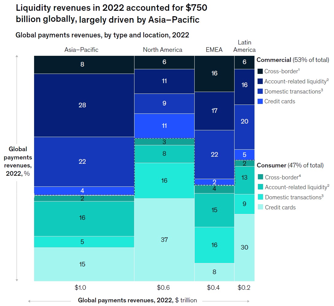 The exception to this trend is Asia–Pacific. In recent years, this region, which accounts for 47 percent of global payments revenues, has served as the primary growth vector.