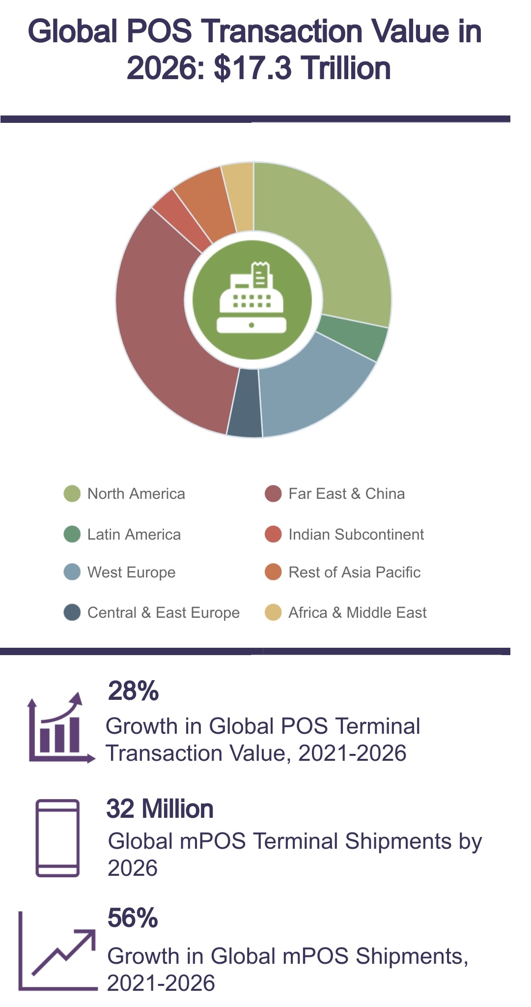 A new study has found that the total value of transactions processed by POS terminals will exceed $17.3 trillion in 2026, from $14.8 trillion in 2021; growing 28%.