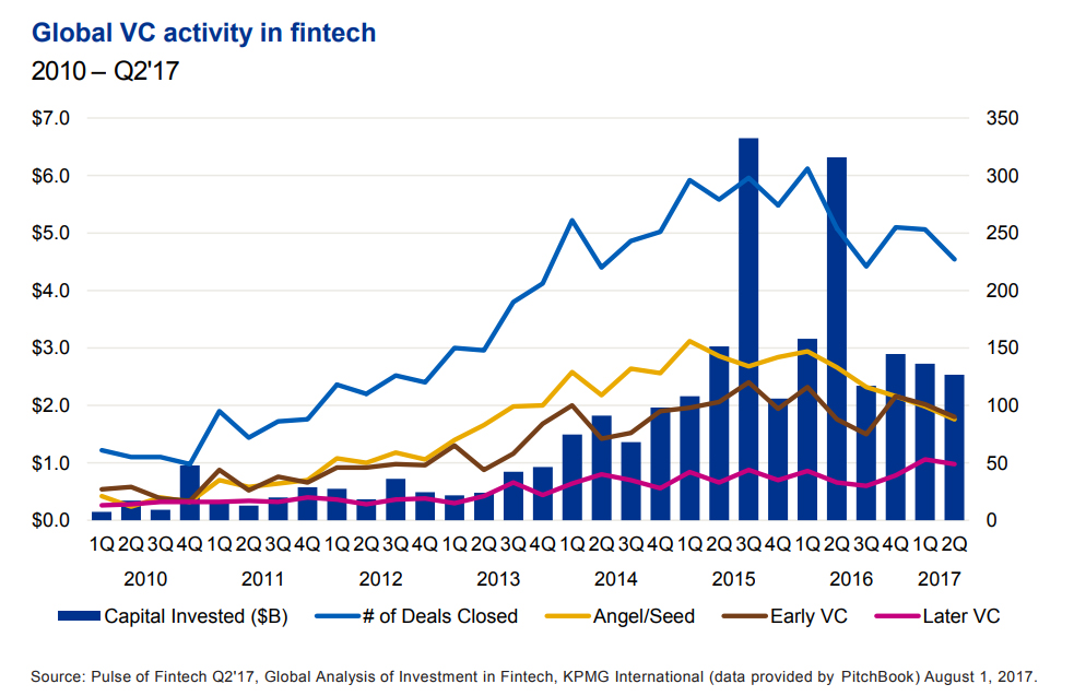 Globally, the FinTech market made a strong rebound in Q2’17, with total investment more than doubling on a quarter-over-quarter basis to more than $8.4 billion. Large increases in private equity (PE) funding and M&A funding propelled the increase, while the amount of venture capital (VC) investment held relatively steady.