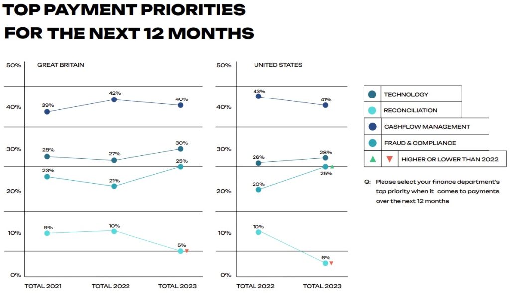 Financial decision-makers are also continuing to tackle a rise in fraudulent activity, as 39% of GB and 35% of US businesses experienced payments fraud over the last year.