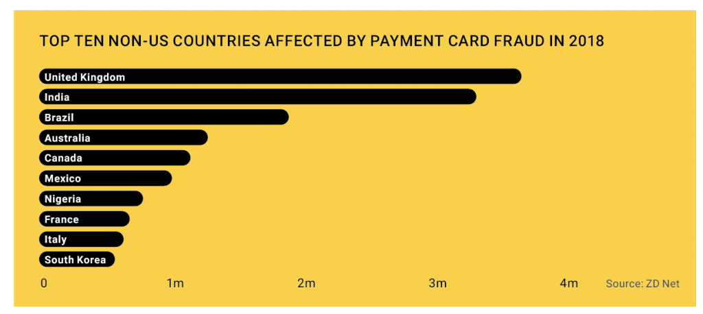 The dynamism of India’s payments market cannot be denied, nor can its increasing sophistication. However, this growing sophistication has brought its own challenges, and India is now set to take over the UK as the major market most at risk of payment fraud outside the United States – see graph below.