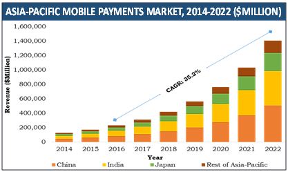 The mobile payments market is projected to grow at a CAGR of 33.4% from 2016 to 2022 and reach $3,388 billion by 2022. Mobile payment refers to the payment for... read more