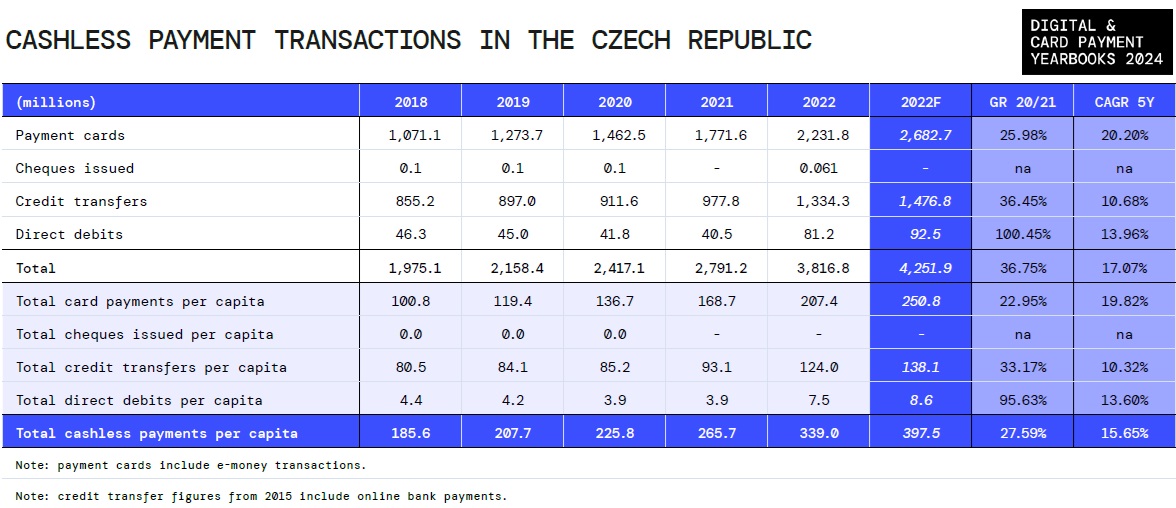 The Czech payments market has seen a robust increase in the use of card payments, reflecting a broader trend towards cashless transactions.