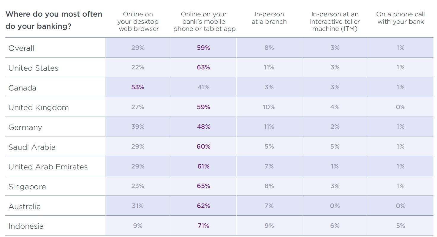 Some people do still prefer in-person banking, such as at a branch (8%) or at an interactive teller machine (3%). Overall, it is essential for banks to offer omnichannel, digital-first solutions to resonate with today’s consumers.