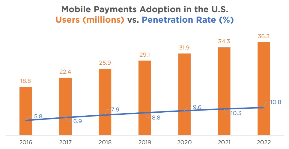 There were 26 million active users of open-loop mobile wallets in 2018, according to research firm Statista, representing about 8% of the total population and 11% of smartphone owners.