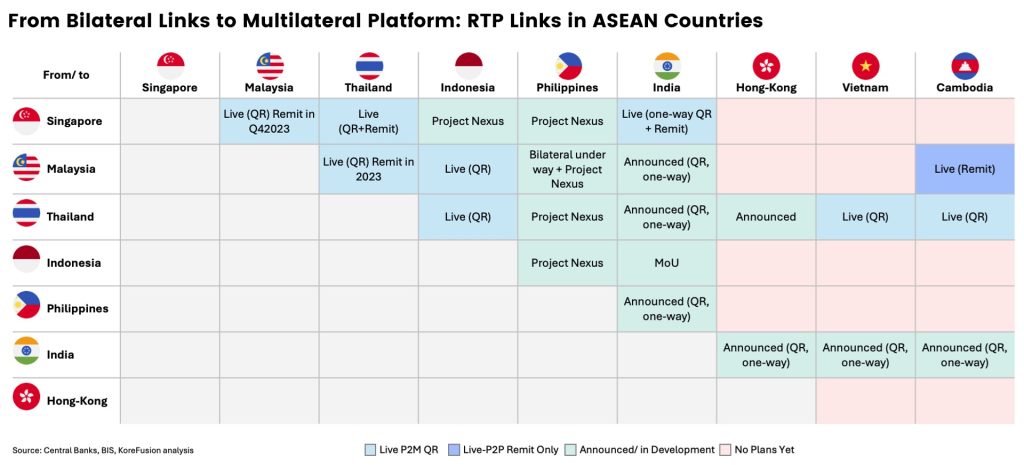Seven Asian markets have already created cross-border RTP links for their domestic remittance and/or consumer payments systems, as the table below shows.