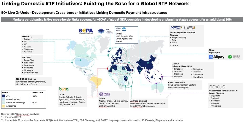 Taken together, these developments mean that markets representing more than half of global GDP – Asia ex-China, Europe and North America, and the Middle East and North Africa – could have interoperable RTP systems within three to five years.