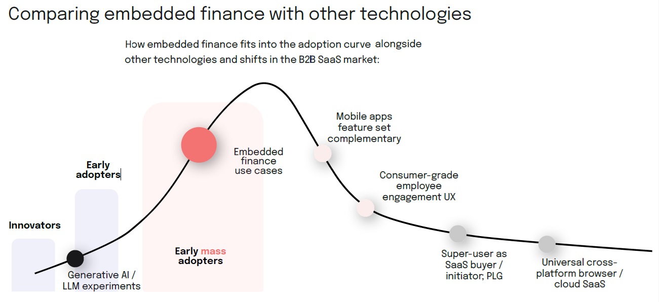 The possibilities also inevitably include AI – whether that’s machine learning, predictive AI, or GenAI – and the ability of SaaS businesses to monetise this value are still at an experimental stage in most scenarios – as embedded finance has also been until recently.
