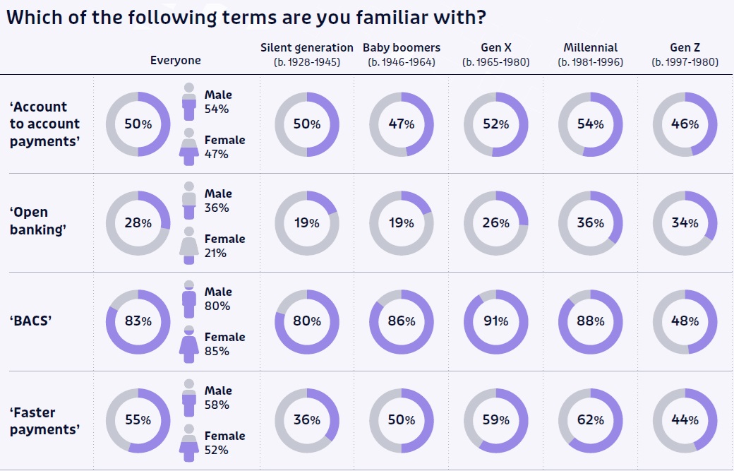 - Men (57%) were slightly more familiar with Pay by Bank than women (53%).